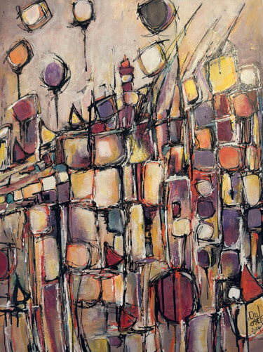 Veilleuse d’îles evokes the tranquility and depth of a harbor, blending fluid reflections and abstract flashes of light.